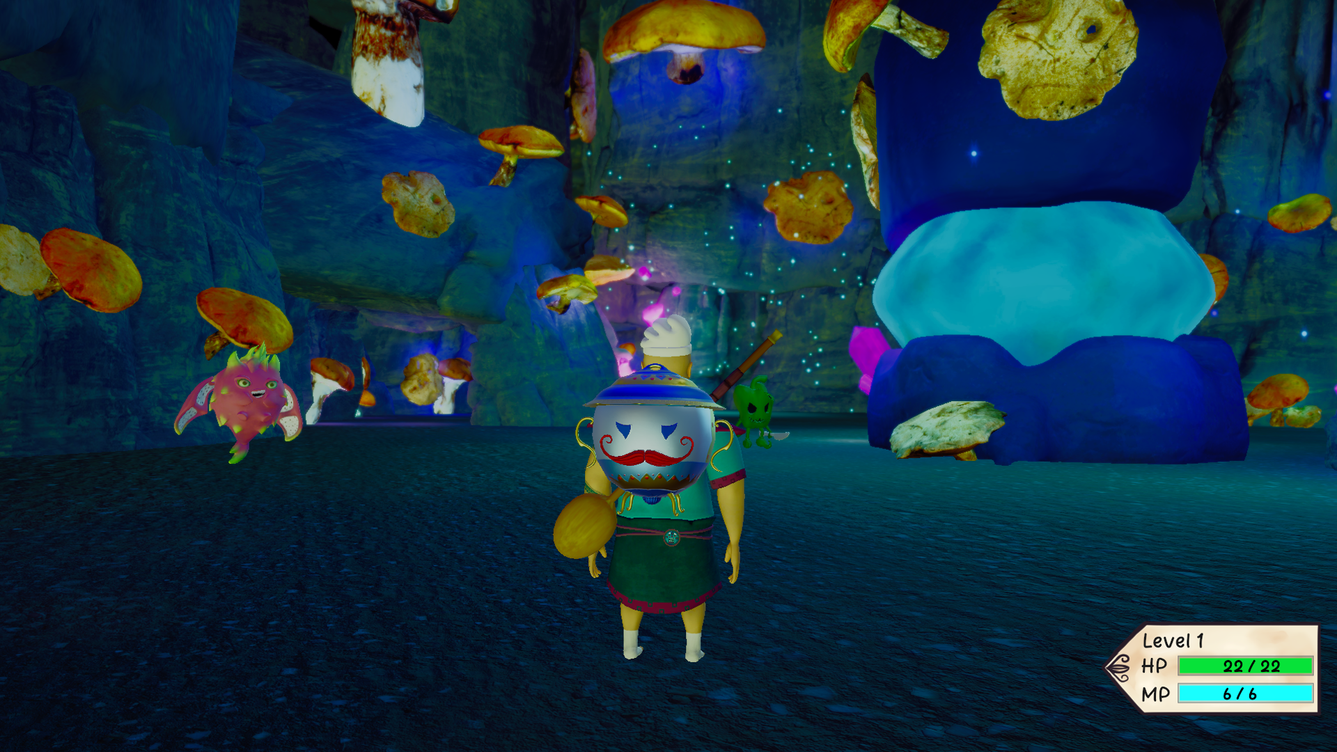 Munch n Magic is a 3D, 3rd person turn-based RPG where players are on a quest to find food for their tribe. Together with the sentient cooking pot Steward, the player gains new abilities by cooking food-like enemies. Players can experiment with ingredients in a delightful cave adventure.